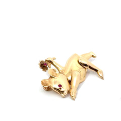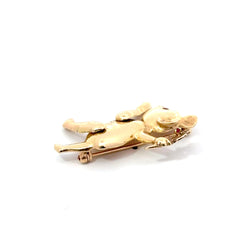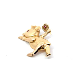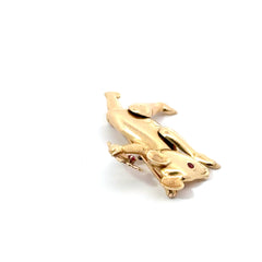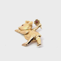 14K Gold Articulating Bear Pin with Ruby Accents – 6.15 DWT, Moving Arms & Legs