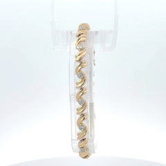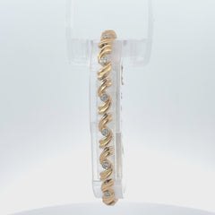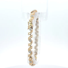 Enhance your jewelry collection with this elegant 14K Gold Fancy Link Tennis Bracelet. Featuring a unique design with intricate links and .30 cttw G-H color, SI clarity diamonds, this bracelet adds sophistication and sparkle to any outfit. At 7.5 inches long and weighing 8.7 DWT, it provides the perfect combination of luxury and comfort.