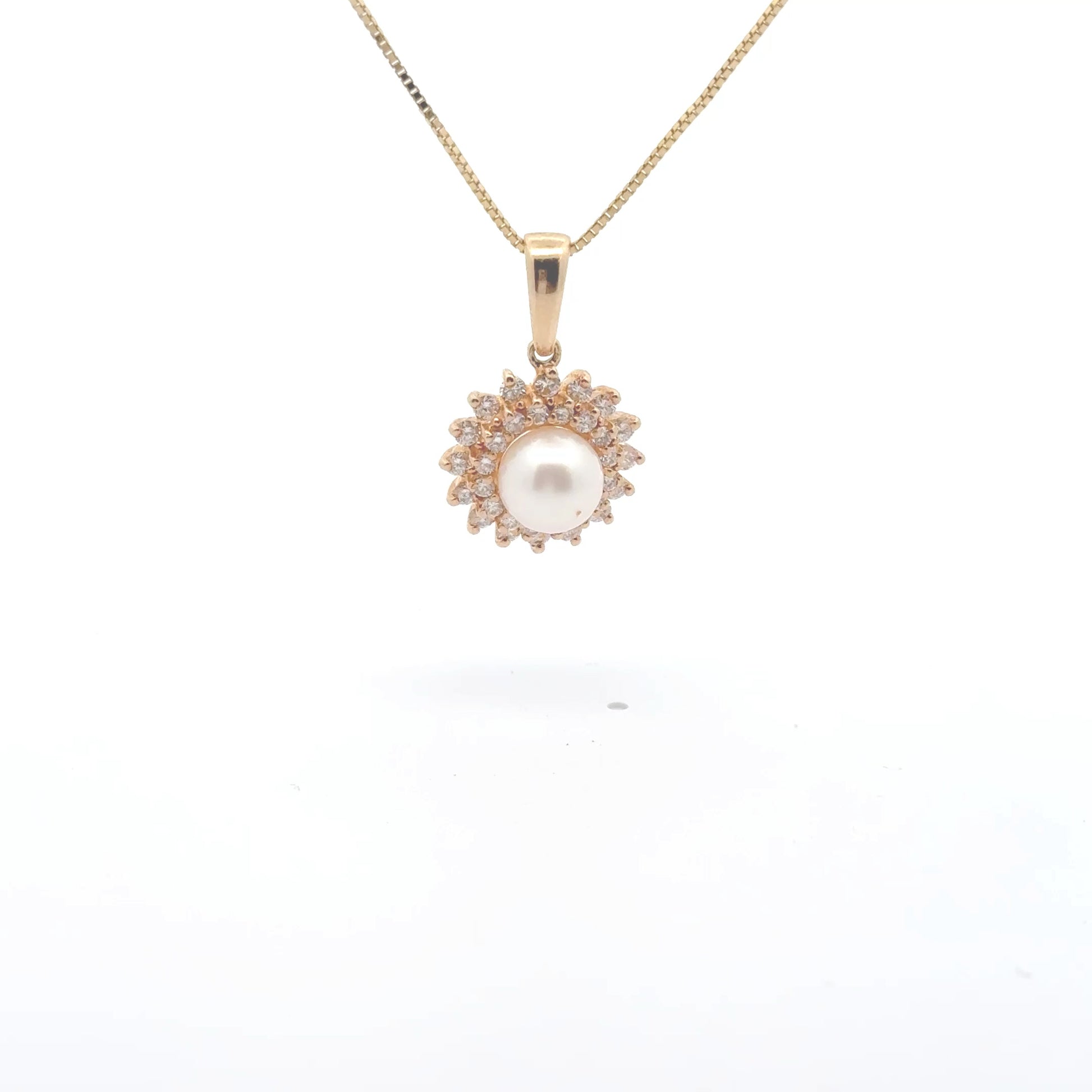 Embrace classic elegance with this 14K Pearl and Diamond Halo Pendant – a piece that will be cherished for generations.