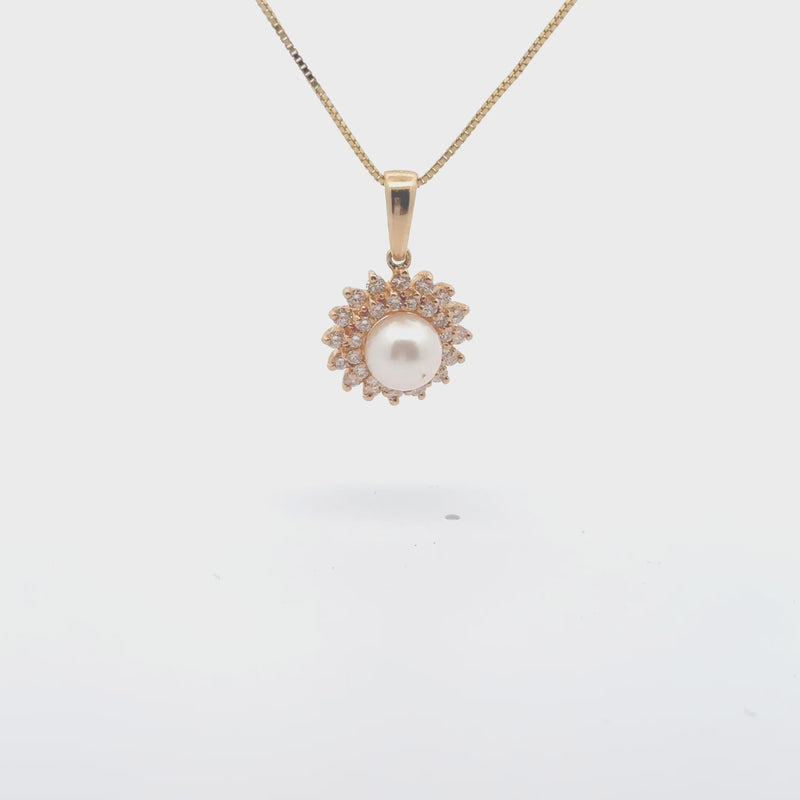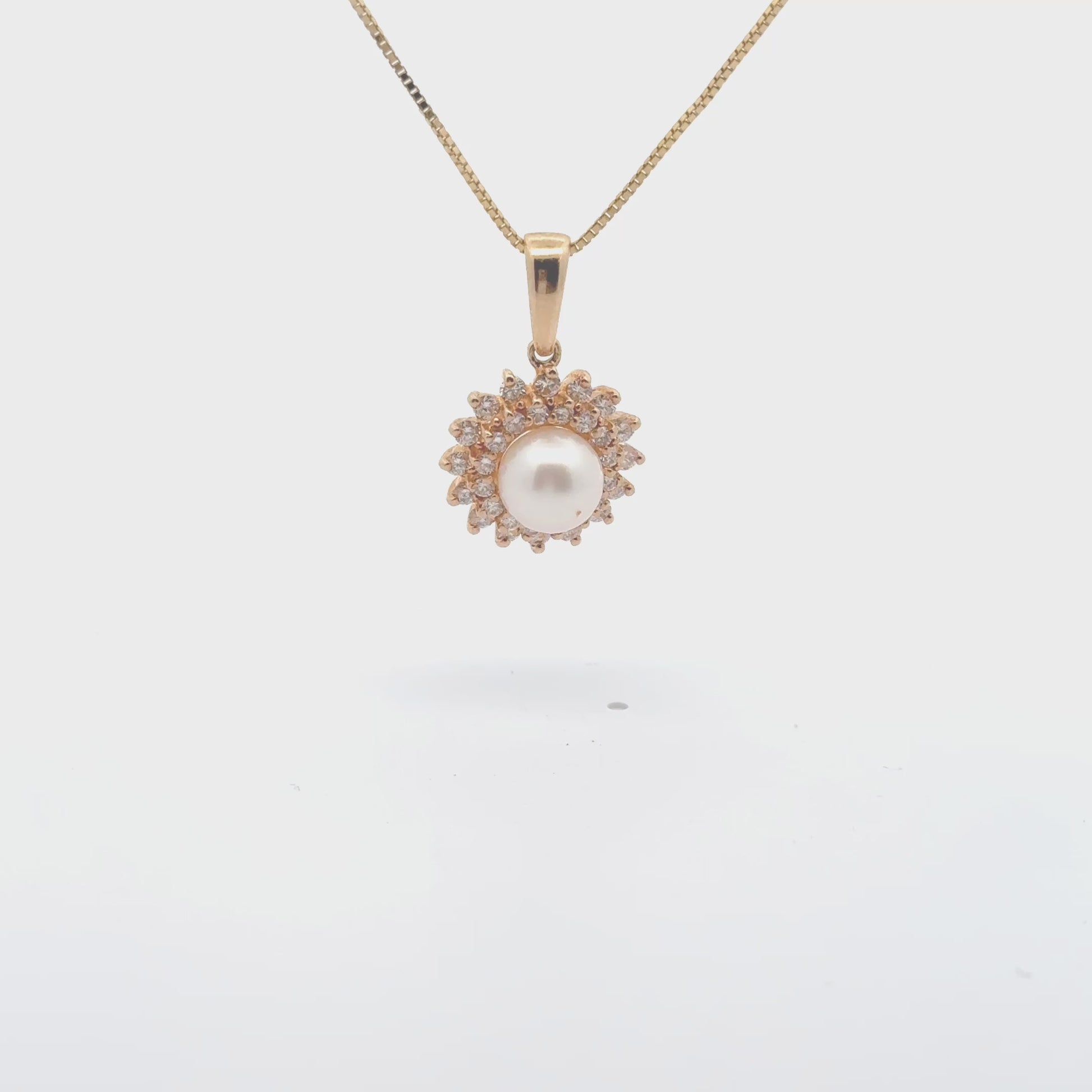 Add a touch of timeless elegance to your jewelry collection with this stunning 14K Pearl and Diamond Halo Pendant. This exquisite piece combines the classic beauty of pearls with the dazzling brilliance of diamonds, making it a versatile accessory for any occasion.
