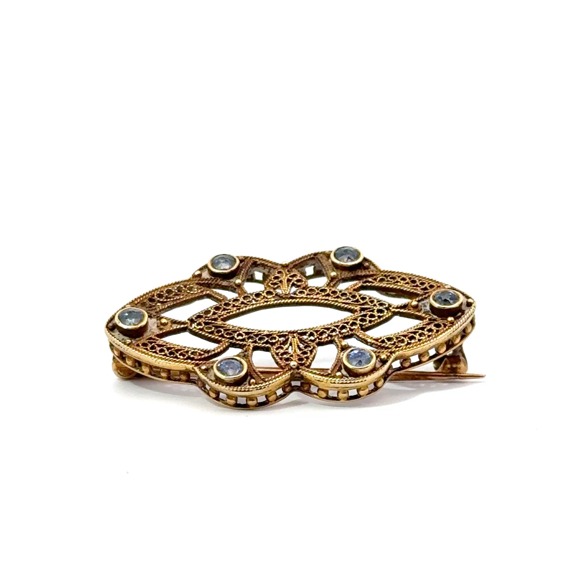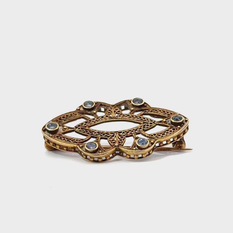 14K Yellow Gold Vintage Sapphire Brooch