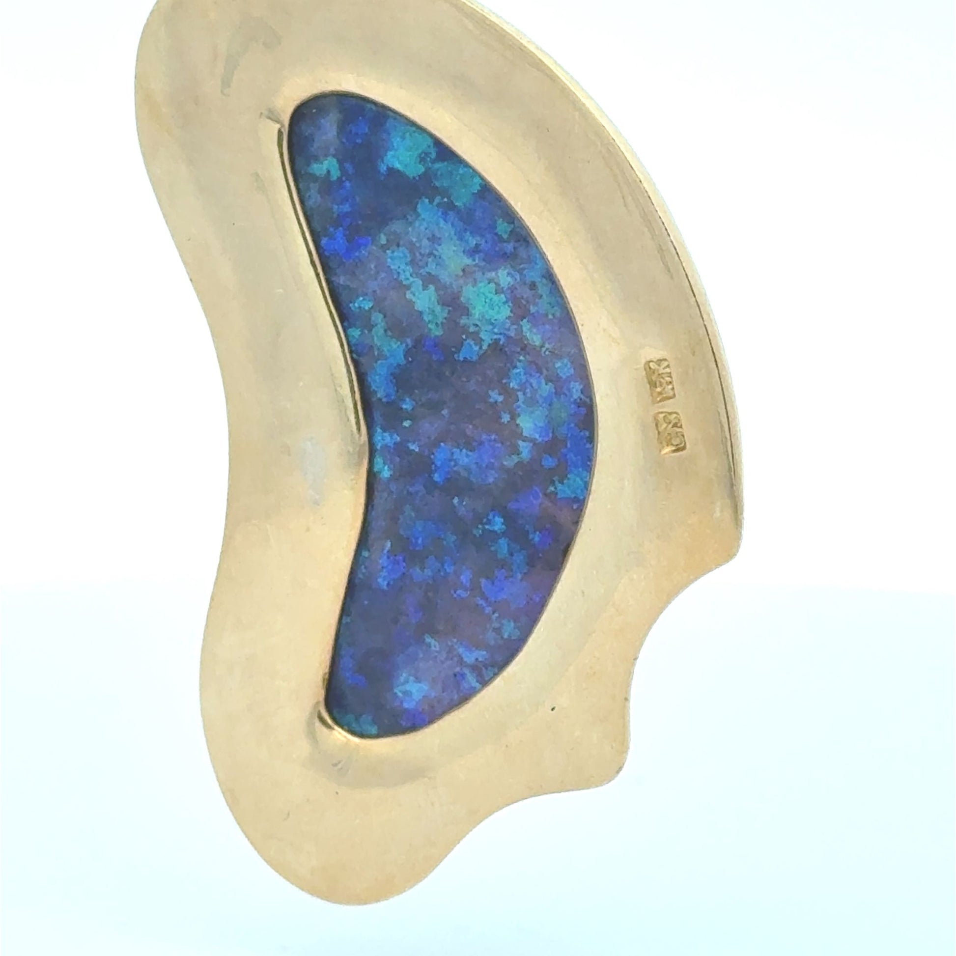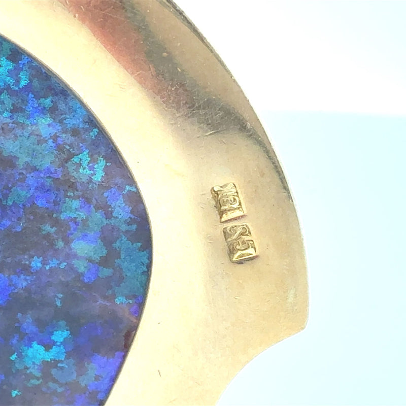 Handle with care to preserve the brilliance of the Andamooka opal. Clean gently with a soft cloth and avoid exposure to harsh chemicals or extreme temperature changes. Store in a padded jewelry box to protect from scratches.