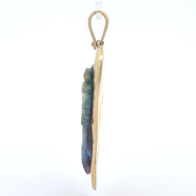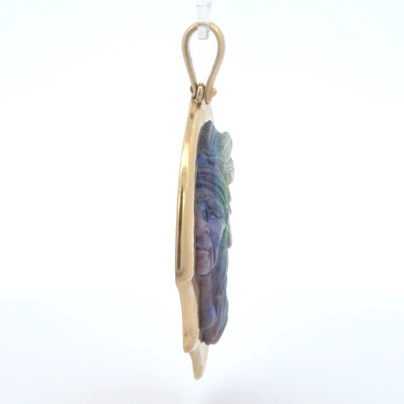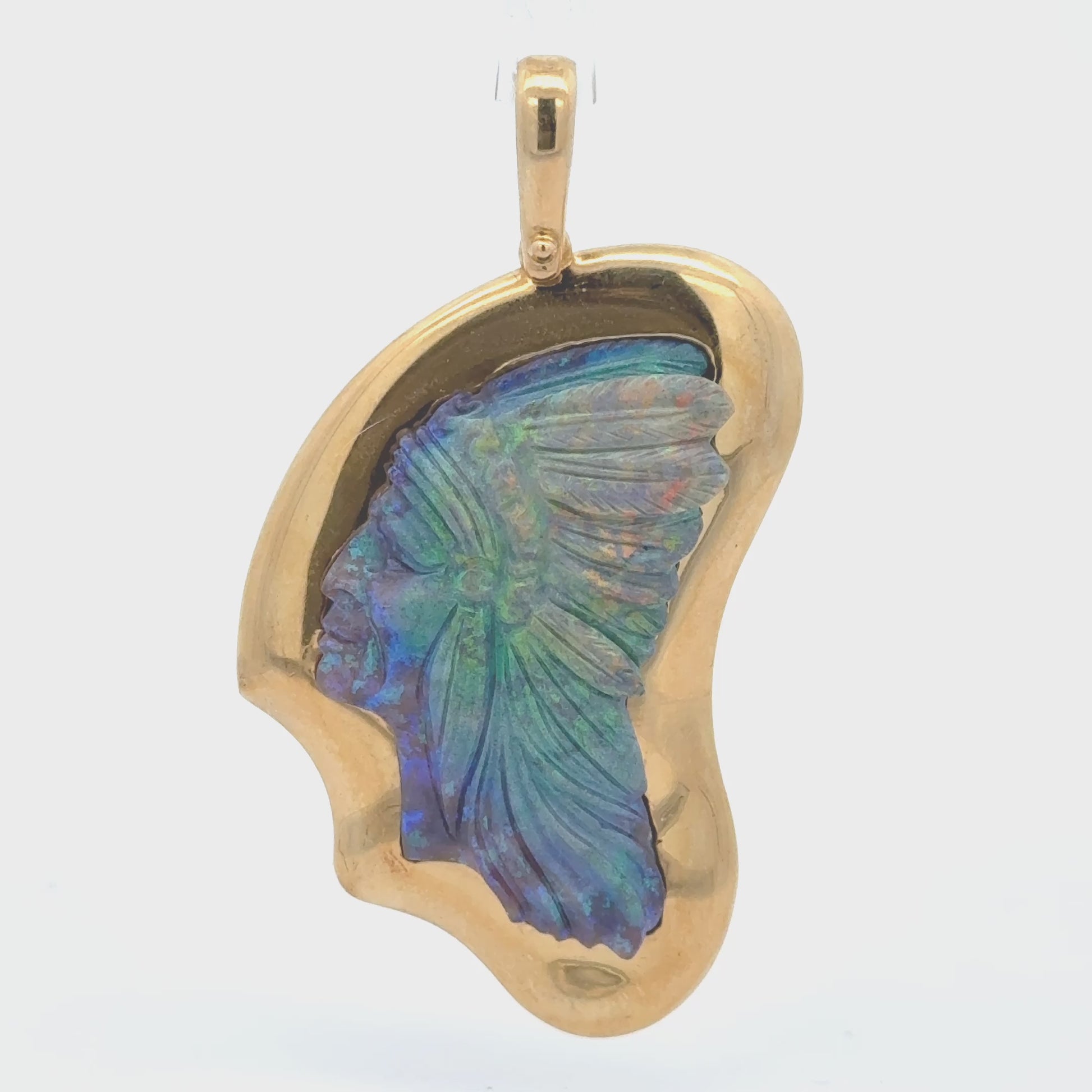 18K Yellow Gold Andamooka "Queen's Opal" Indian Head Pendant