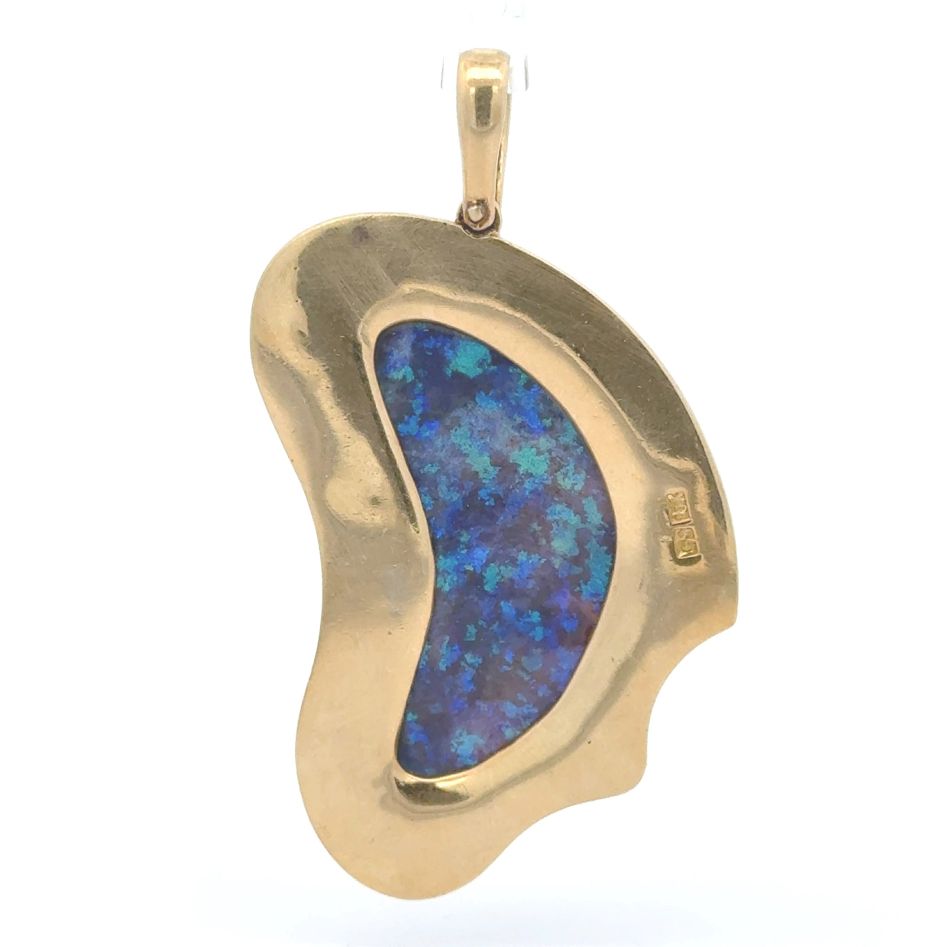 Celebrate the elegance of nature and artistry with this extraordinary 18K Yellow Gold Andamooka "Queen's Opal" Indian Head Pendant. Featuring a vibrant Andamooka opal, famously known as the "Queen's Opal," this pendant showcases stunning flashes of color set against the warm glow of 18K yellow gold. At 2.25 inches in size and weighing 16.3 DWT, this is a bold statement piece that embodies luxury and heritage.