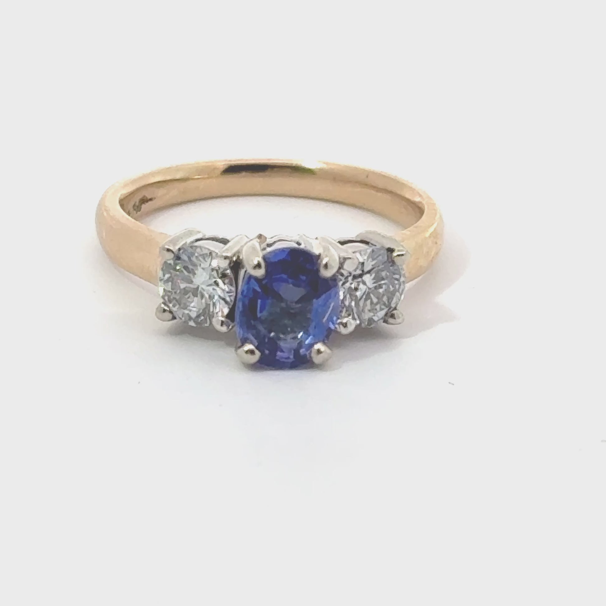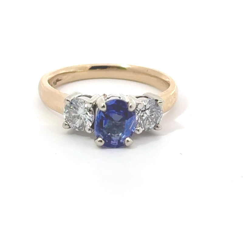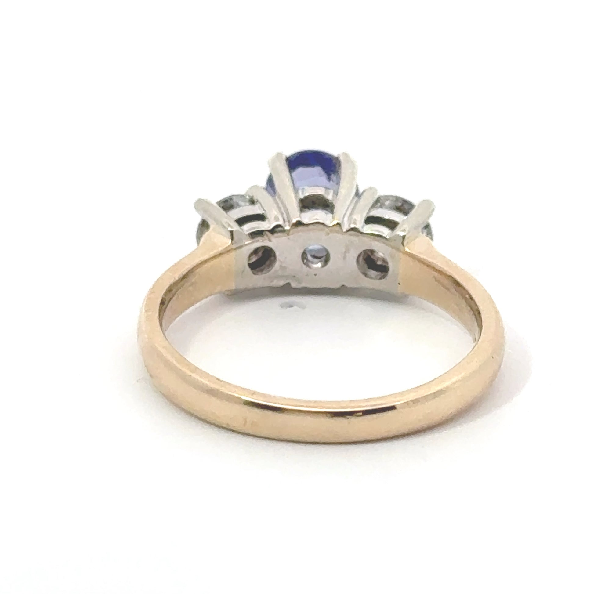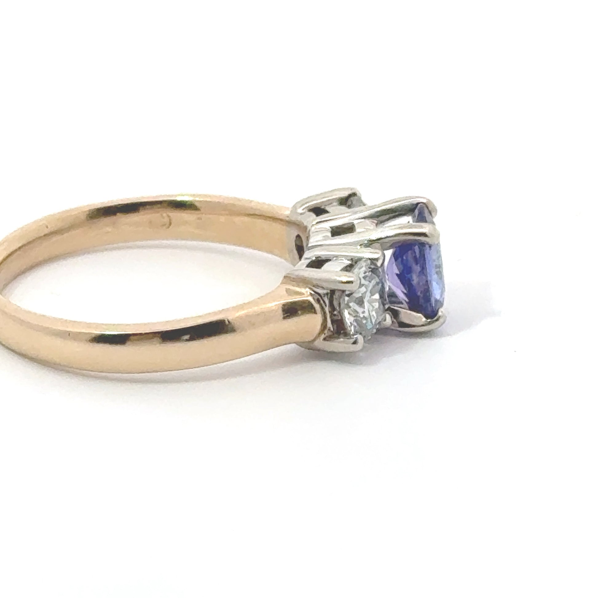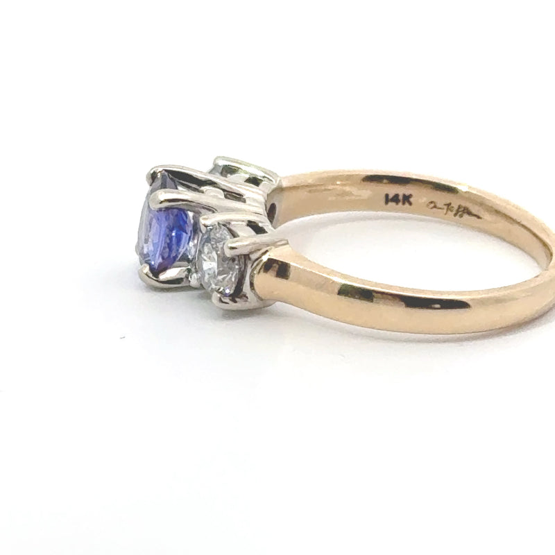 - Center Stone: A vibrant 1.25ct tanzanite that radiates a mesmerizing deep blue-violet hue.