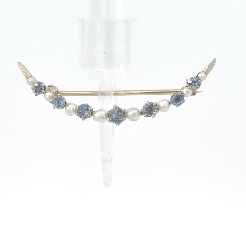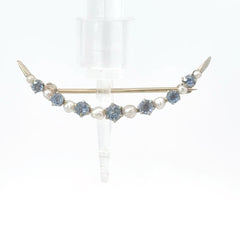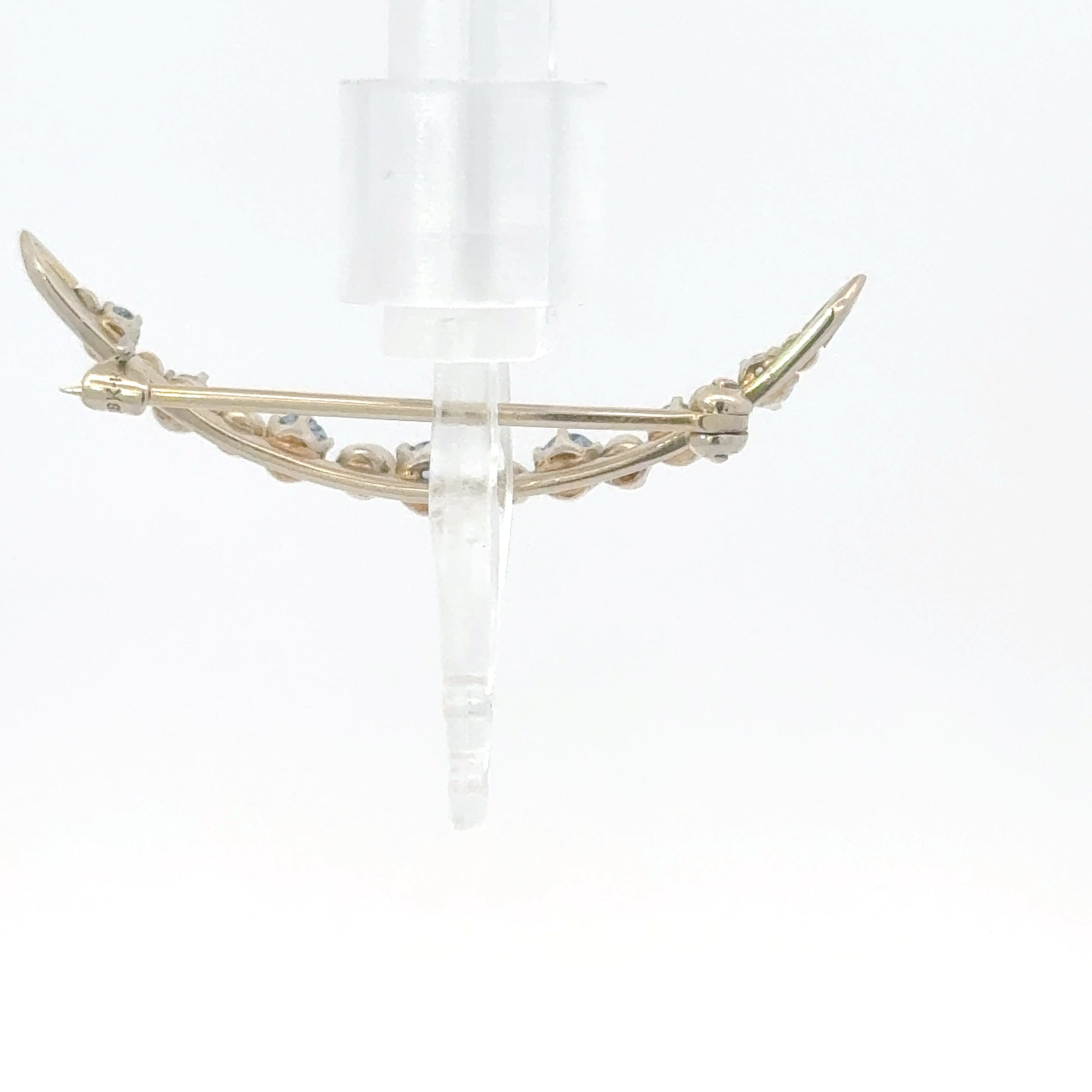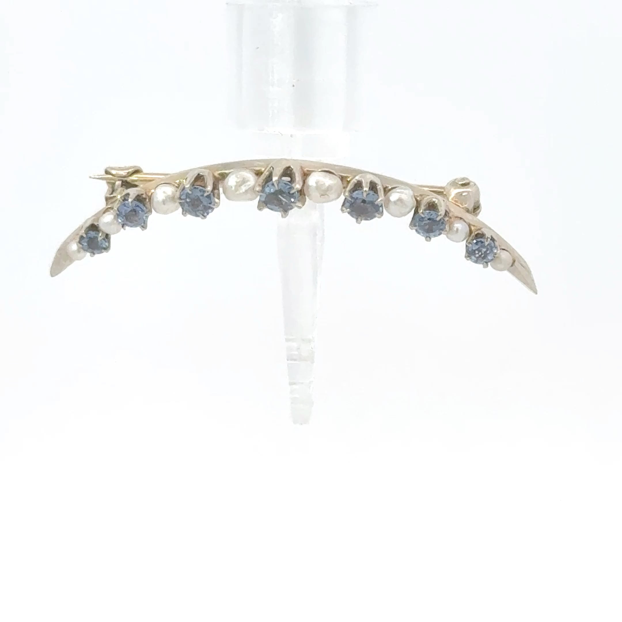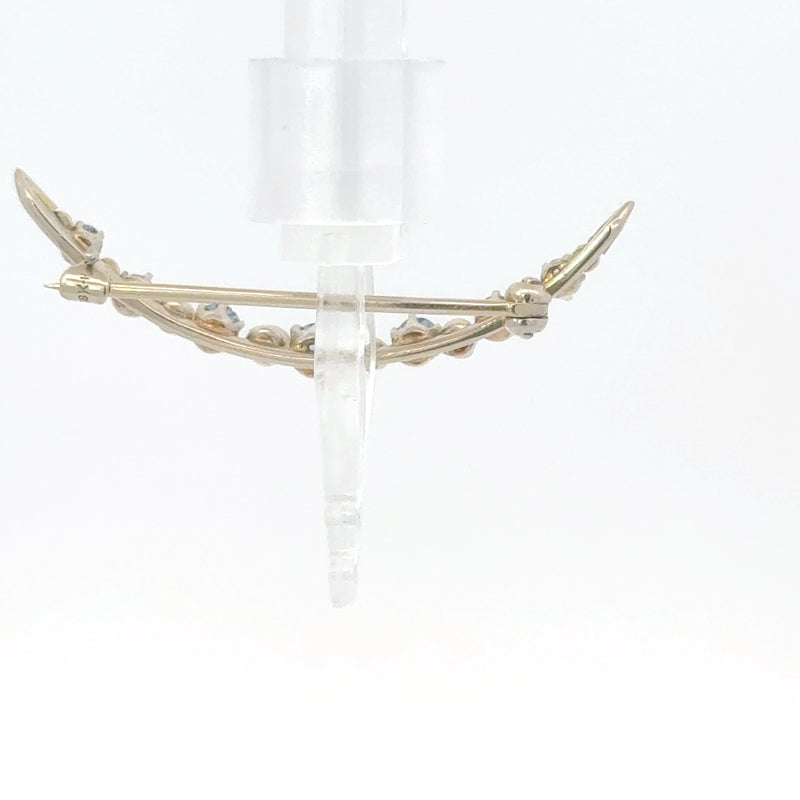Antique 18K Gold Half Moon Aquamarine and Pearl Brooch