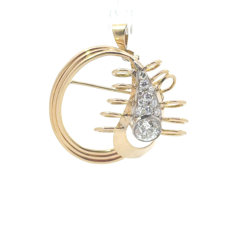 Antique 18K Gold Mine Cut Brooch Pendant