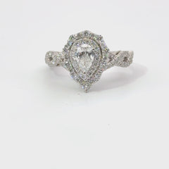 Celebrate timeless love with this stunning 2.25cttw pear-shaped engagement ring. Featuring a brilliant 0.65ct center stone, this exquisite piece is crafted with F-G color and SI1 clarity stones, ensuring exceptional sparkle and sophistication.