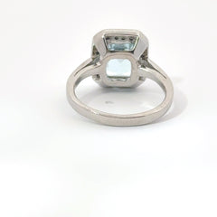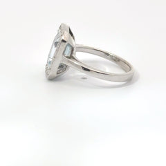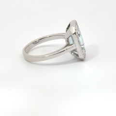 Stunning 2 Ct Emerald-Cut Aquamarine Ring with Diamond Halo